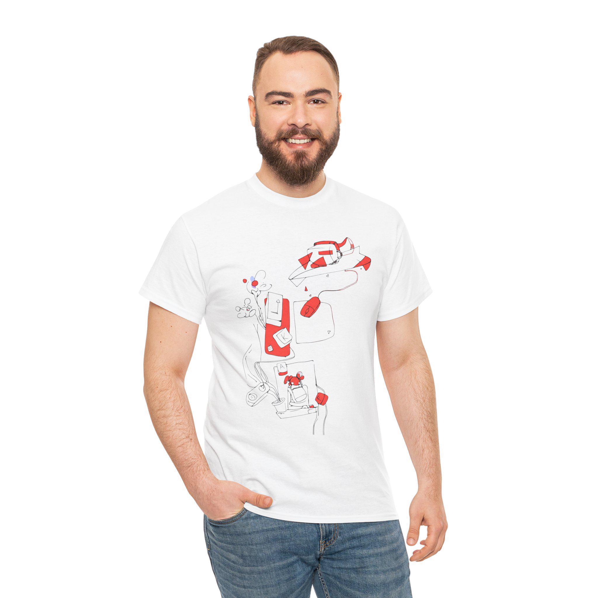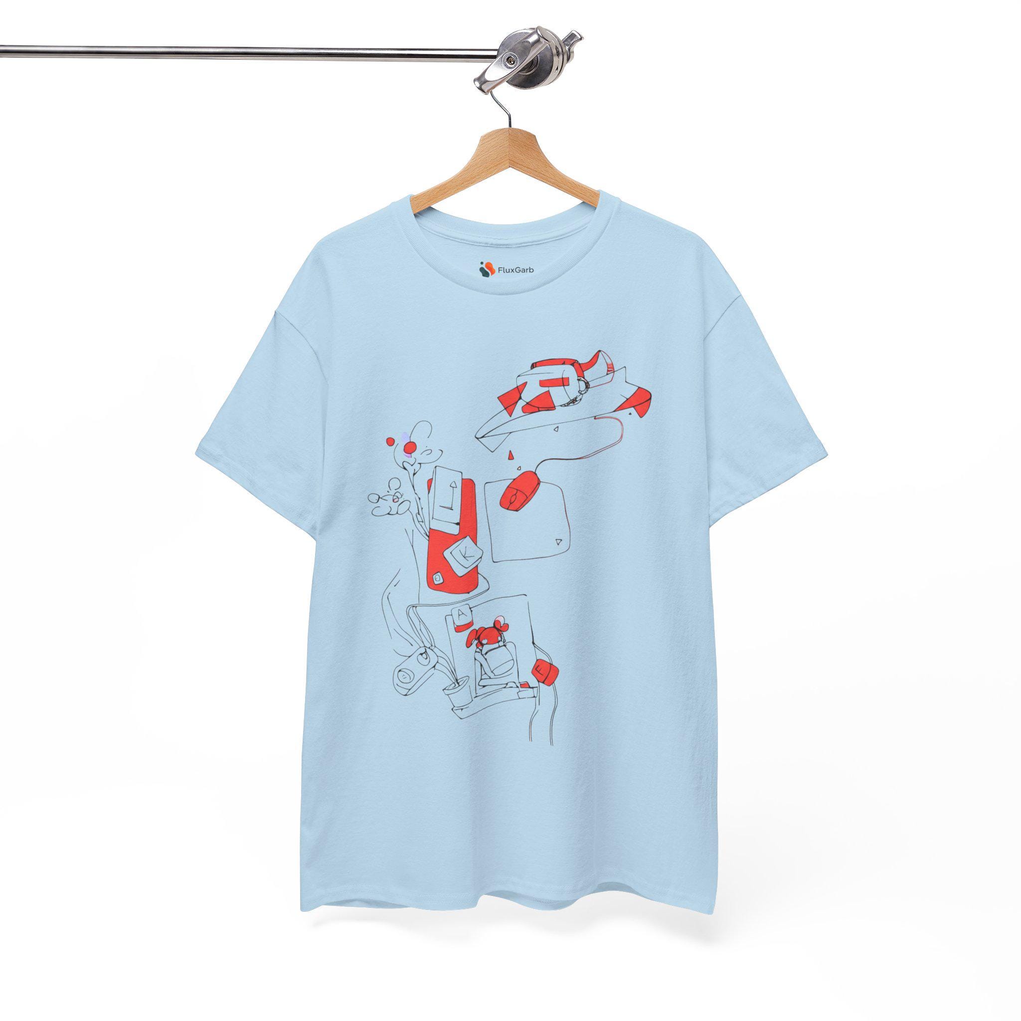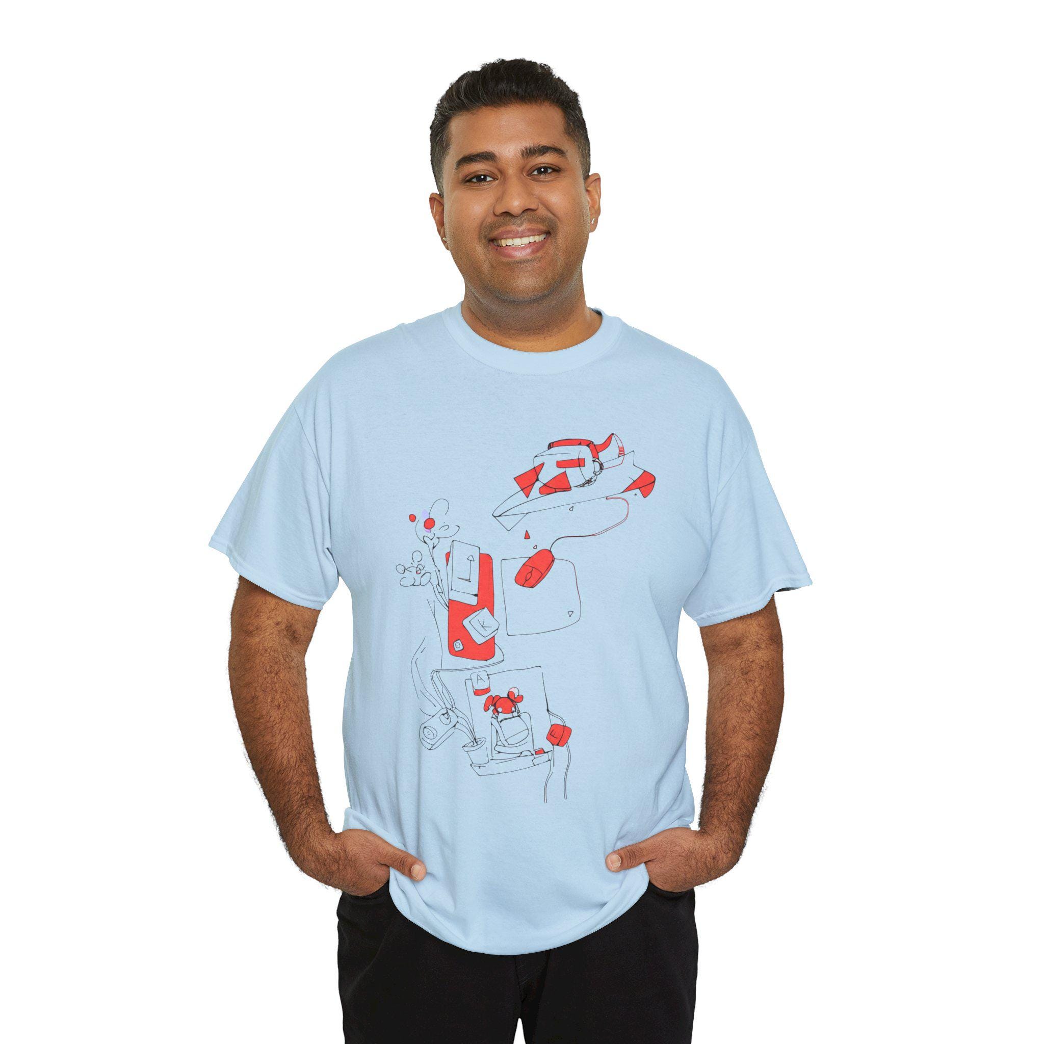 A comfortable and versatile tee featuring hand-drawn office material designs such as keyboards and mouse. Perfect for adding a touch of creativity to your everyday look or as a casual work-from-home outfit. Ideal for adults who appreciate unique and quirky designs. Relevant for office-themed parties, casual Fridays, and tech-related holidays.