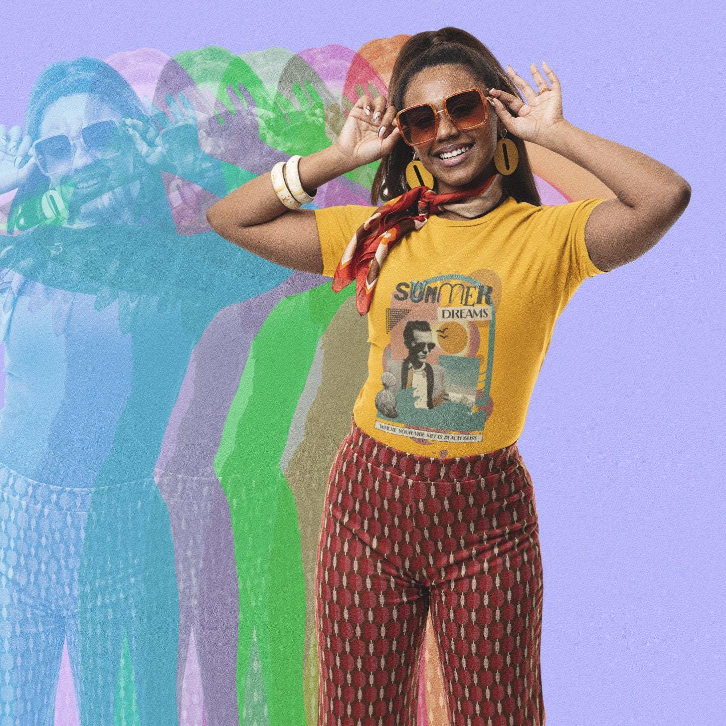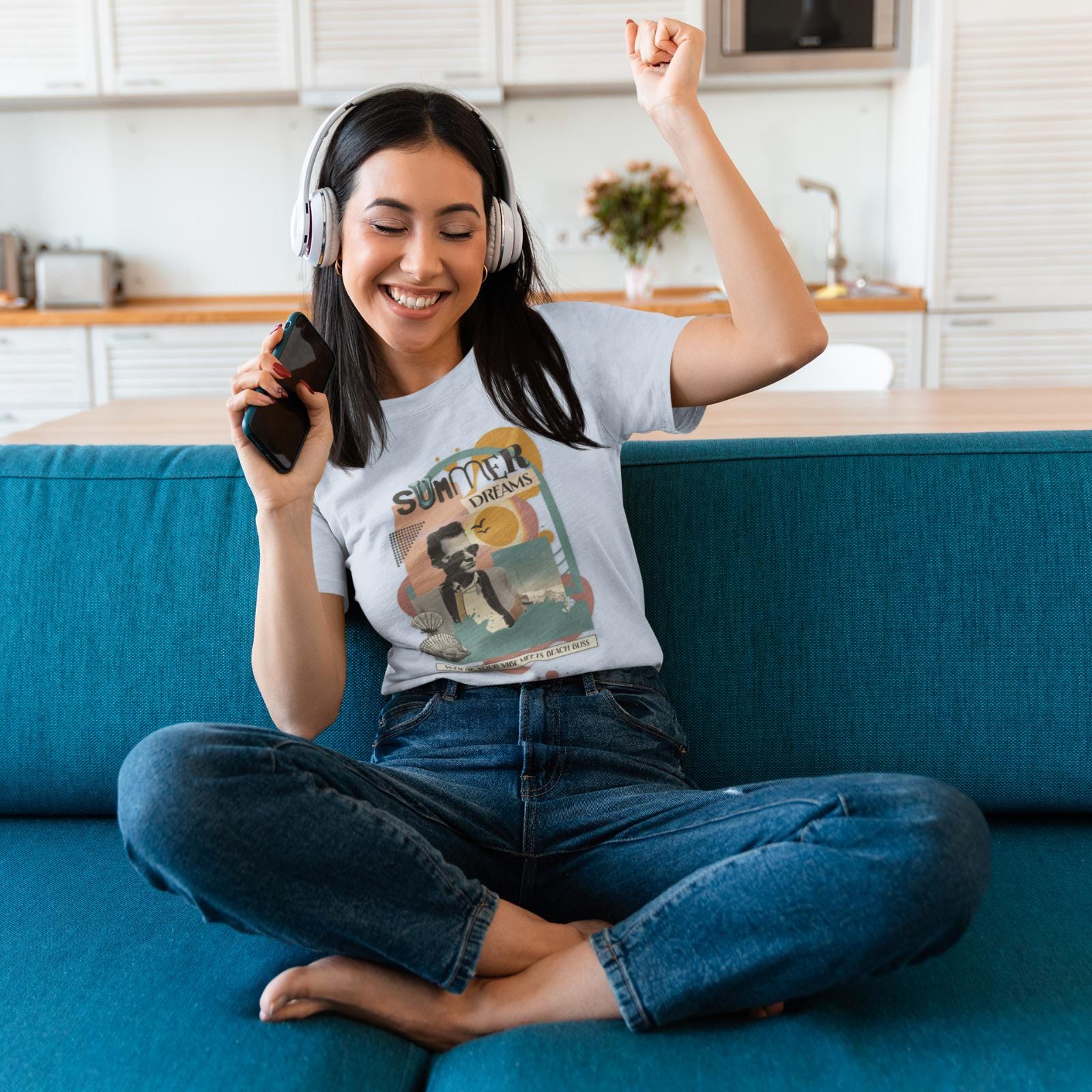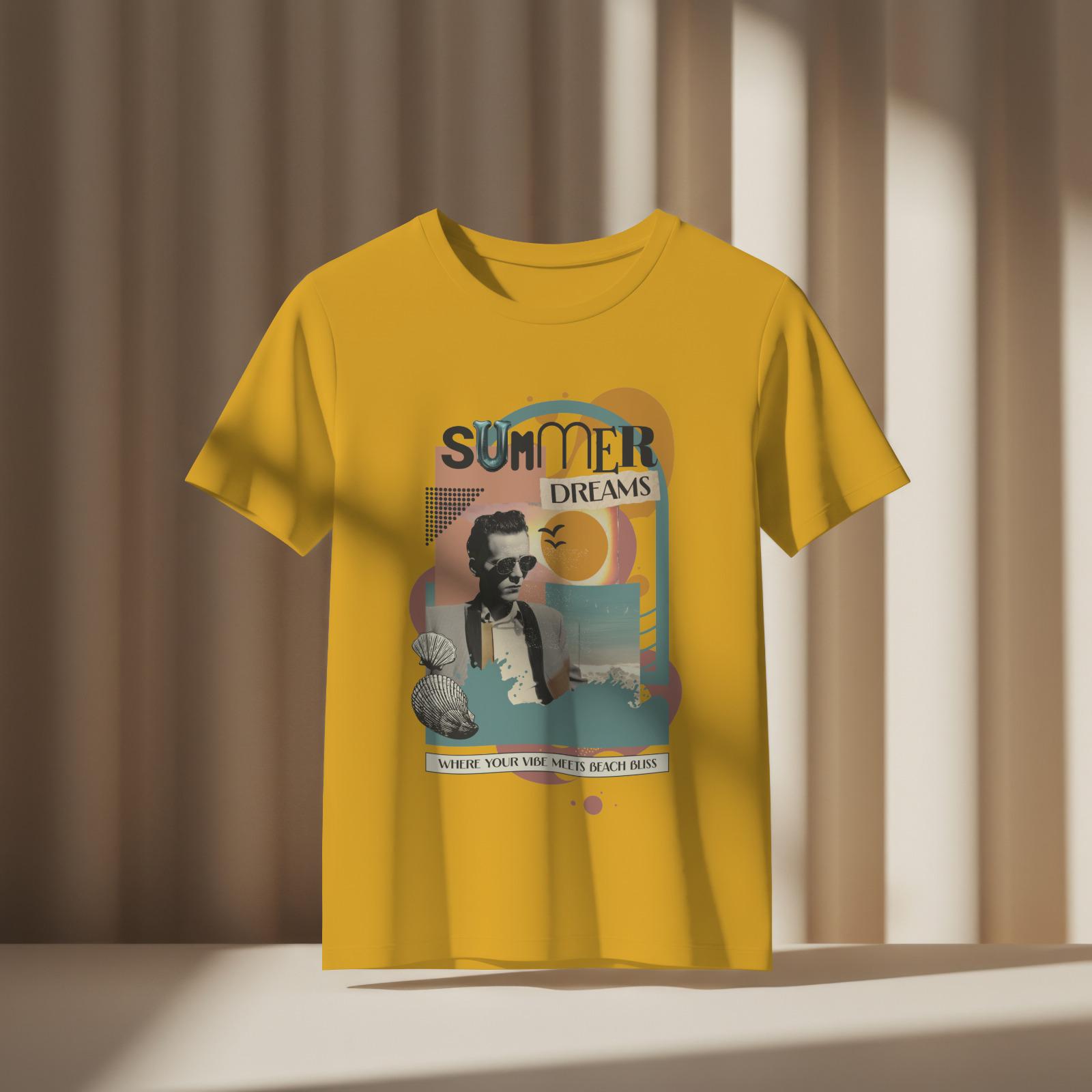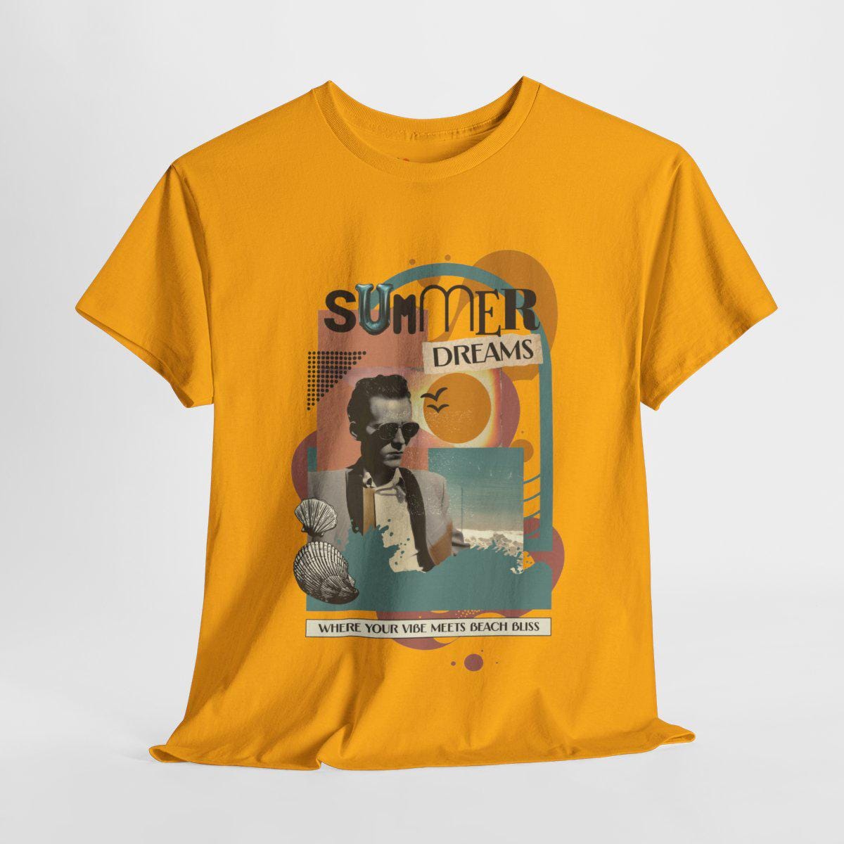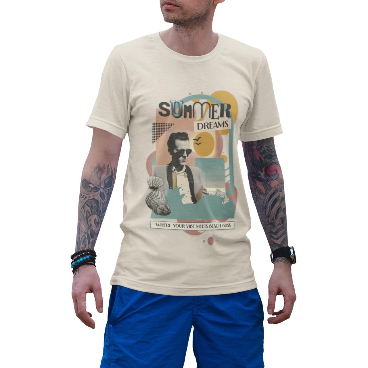 This T-Shirt features a vibrant, collage-style graphic titled "Summer Dreams" with a vintage-style beach theme. It exudes a nostalgic, artistic, and dreamy summer atmosphere, perfect for those who love the beach and relaxed vibes. Ideal for summer vacations, beach outings, and casual wear.